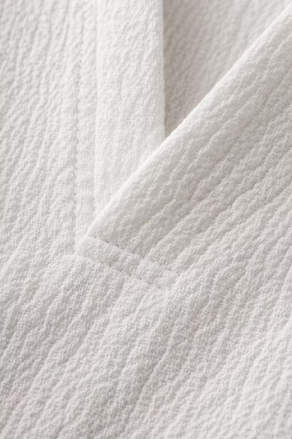 - Open V-neck front with minimal detailing