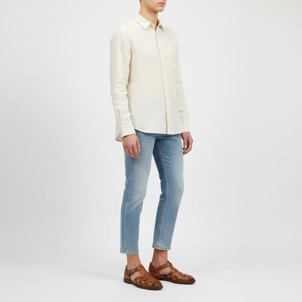 This men’s closed toe sandal features a multi-strap upper with an adjustable buckle closure for a secure fit. The structured sole and enclosed front design create a balanced silhouette suitable for city use and seasonal wardrobes. An open side layout allows airflow while maintaining a composed appearance. Designed for modern menswear footwear collections and ecommerce product listings.
