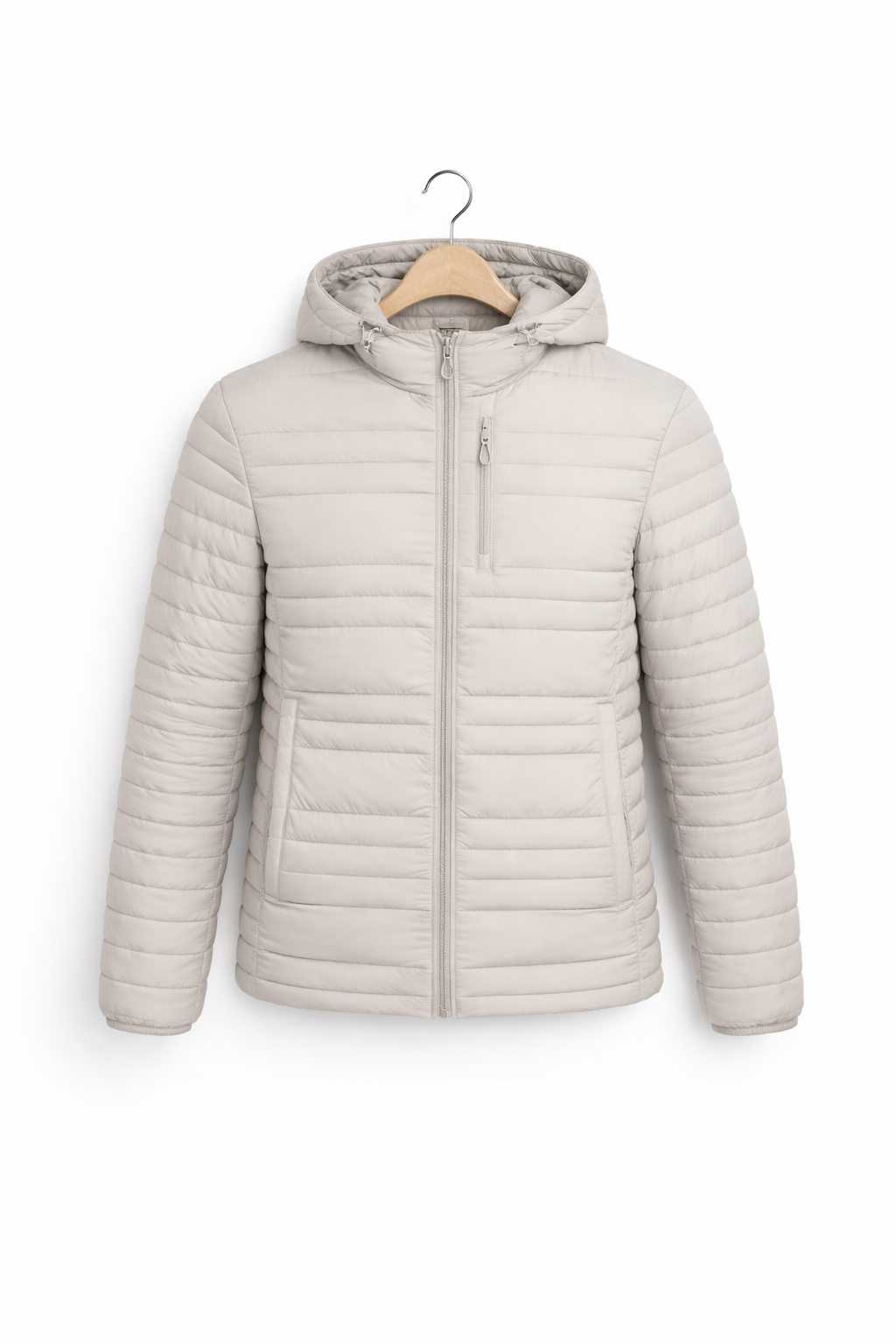 The Glacier Haven Insulated Hooded Jacket is designed for Canadian cold weather with a quilted padded shell and removable hood for added protection. Horizontal channel stitching ensures balanced insulation distribution while maintaining a streamlined silhouette. The full-length zip closure and high collar help shield against wind exposure during commuting or travel. Designed for layering over knitwear or active pieces, this jacket delivers clean, modern winter styling suited for urban environments.