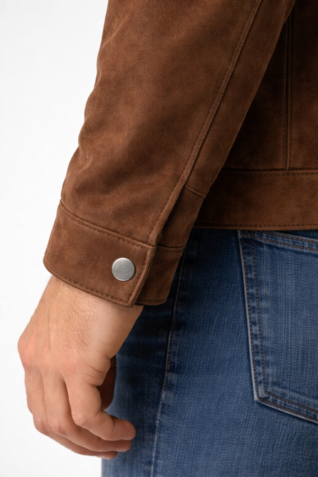 This men’s zip-front jacket is made with a suede-style textile shell and a clean, structured profile. The minimal panel layout and collar design create a sharp silhouette suited for city settings. Designed for seasonal layering, it transitions smoothly from daytime wear to evening plans. A refined outerwear option for modern urban wardrobes.