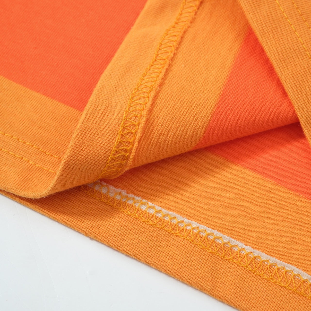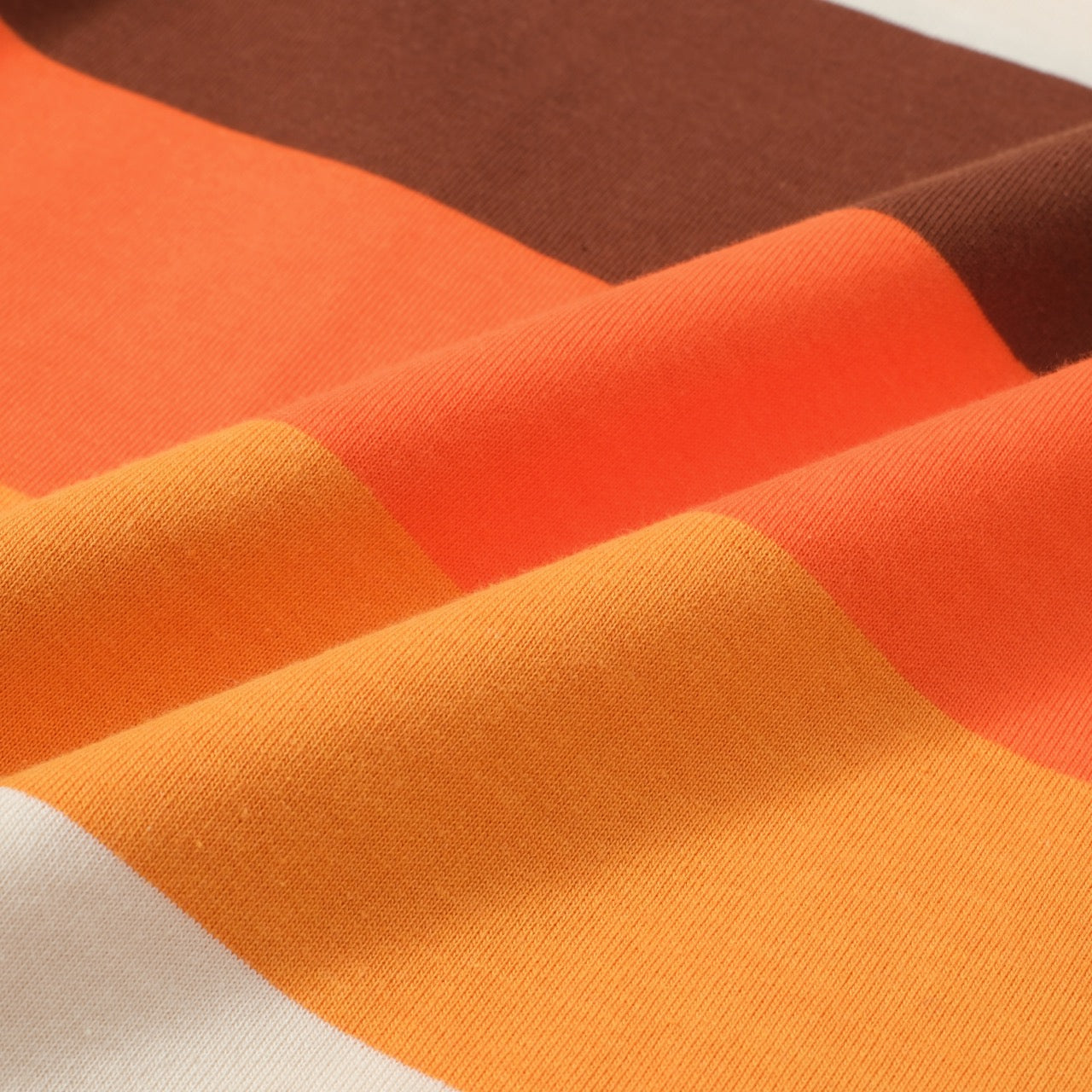 This men’s knit t-shirt is produced from a fine gauge knit featuring bold horizontal stripes across the entire body and sleeves. The color palette blends cream, mustard, orange, and brown tones for a balanced retro aesthetic. Designed for daily wear, travel, and casual professional environments, this piece pairs well with trousers or denim. The knit structure supports consistent wear across multiple seasons.